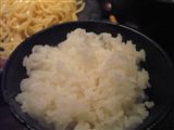 つけそばのお味ですが、つけダレは最初やや醤油がとがっている感じがしたものの、基本的にあっさりのシフトでとても食べやすいものです。麺の量もちょうどかやや少ない感じで、サービスライスをつけるとぴったり収まる感じでした。