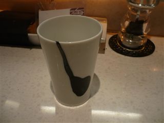 陶器のコップも美しいデザインです。
