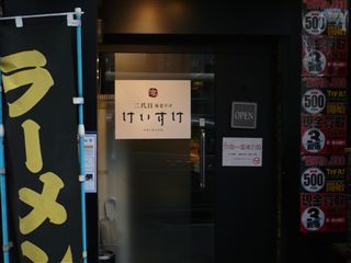 こちらのお店は、本郷にある竹炭を使用した真っ黒なスープが特徴の、味噌ラーメン専門店「初代けいすけ」の支店です。