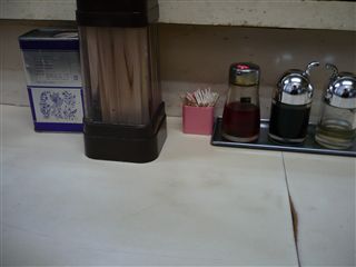 卓上の調味料です。どこにでもある中華屋さんチック。