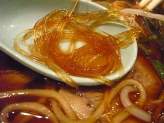 スープは、たまり醤油を使った濃厚ですがマイルドなものです。動物性スープ(豚肉)の旨みが十分に溶け出しています。真っ黒スープですが、今回はしょっぱすぎということはありません。