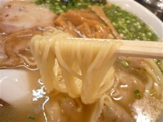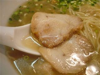 まず、スープが特徴的です。どんぶり一杯になみなみと注がれたスープは半透明で塩味です。