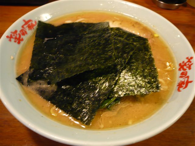 家系ラーメンの具の特色は、ほうれん草に海苔3枚ですが、ここではその海苔がまるで蓋の様に乗せられてきます。