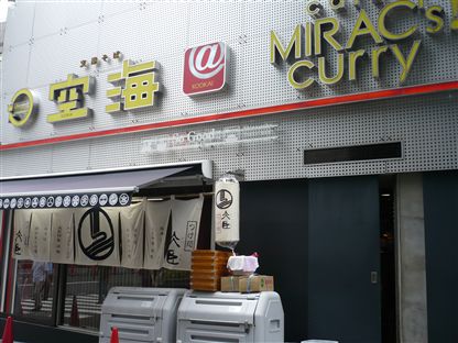 お店を横から見た図です。「空海」「Cafe Mirac's curry」の看板がそのままです。