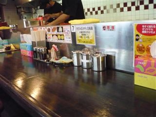 カウンターに着席して食券を渡すと、麺大盛かライスどちらかの有無とニンニクの有無を聞かれます。ライス少々とニンニク無しでお願いしました。
