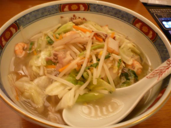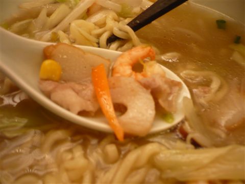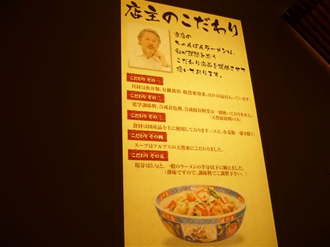 あと、撮影はできなかったのですが、店内壁面のところどころにモニタTVがあり、このちゃんぽんがいかに体にいいかが、延々とビデオで流れています、