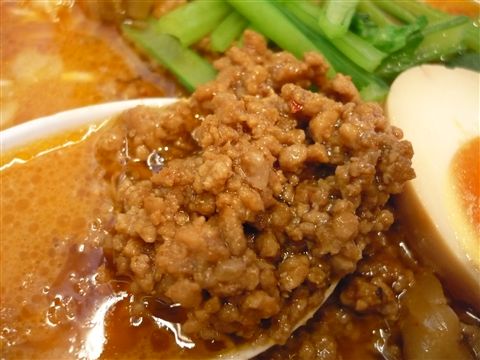 坦々麺にはおなじみのビュー、たっぷりの挽肉です。
