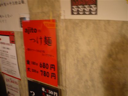 「つけ麺ロッソ」とは、2007/8/4から発売となった新作つけ麺です。改めまして、オーダーはつけ麺ロッソ(並)750円です。