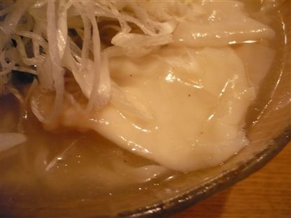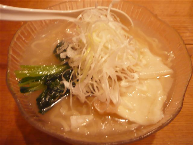 冷たい鶏塩スープは珍しいですね。おろし生姜がちょっぴり入っていて、清涼感がプラスされています。一方、ネギ油も浮かんでいて、コクもプラスされています。