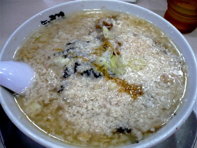 ところどころに黒く見えるのは具の岩海苔です。岩海苔は、このラーメンの人気のトッピングです(今回はトッピング無し)。