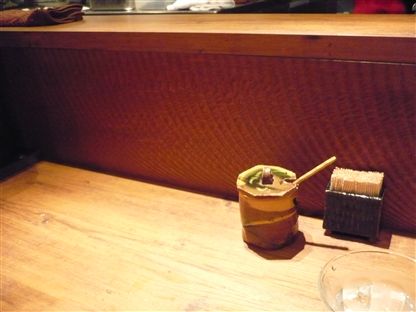 カウンターの様子です。卓上の壷は「辛子味噌」です。