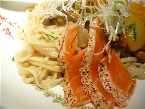 お皿の後ろにあるのが、スモークサーモン、香ばしくって、これだけ食べても美味しいです。