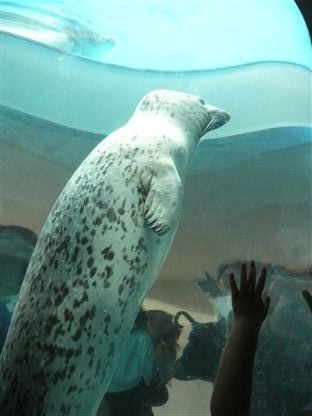 「ヒレアシビーチ」と呼ばれるエリアです。上下の水槽の間に、ガラスの通路があって、セイウチなどが、通路の間を行き来する様子が見られます。