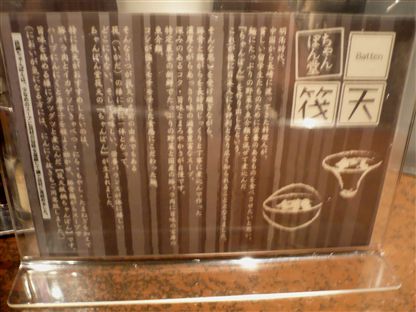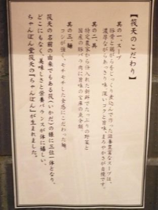 同じく卓上にあるカード、ちゃんぽんの歴史と「筏天」の店名の由来です。。