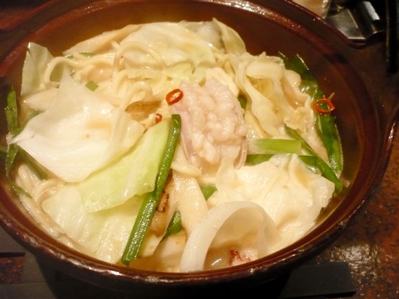 正真正銘もつ鍋のスープでした。ニンニクが効いたモツと野菜の旨みが溶け出したスープで、これはこれで、美味しいです。