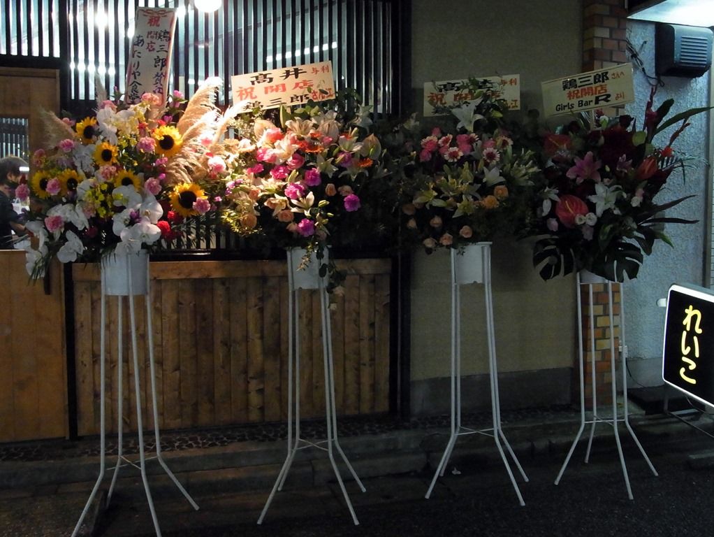 店の場所は、小岩駅南口からすぐの新小岩方面に向かったJRガード沿い。 店頭には開店祝い花いっぱい。
