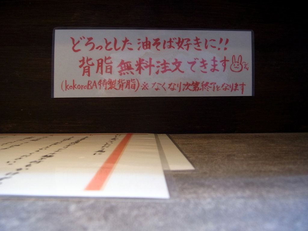 kokoroba特製背脂とのことで、kこちらokoroba@面影橋の関連店なのですね!