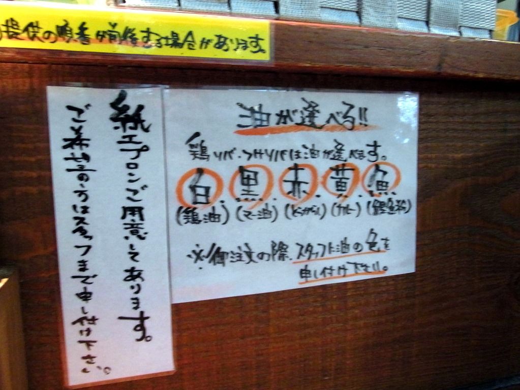 鶏ソバ・つけソバは、油が5種類から選択可能。