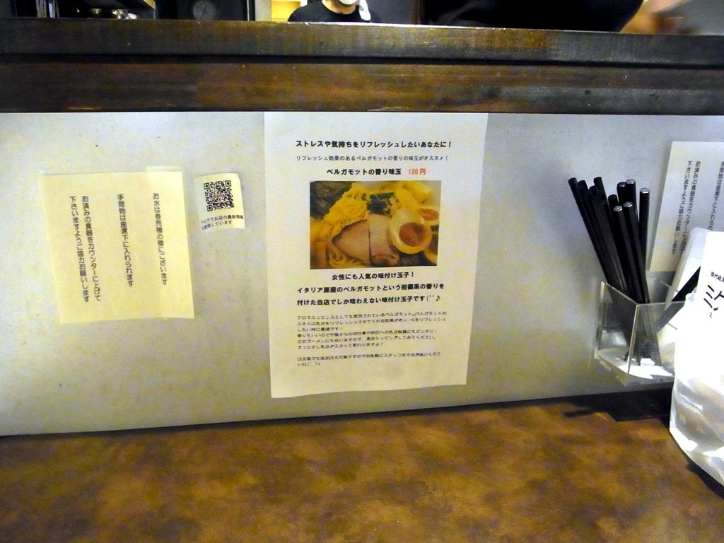 店内は、L字型カウンター9席。ってか、暫く来ないうちにリフォームしたのですね!以前は凹字型カウンター12席でしたので、客席を減らすという大英断を敢行。ですが、厨房スペースがだいぶ広くなって、その分味のバリエーションが増えたと言う事でしょうか。