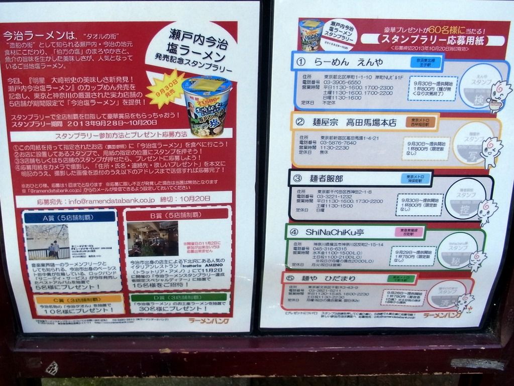 御大大崎さんプロデュースのカップ麺『明星 大崎裕史の美味しさ新発見! 瀬戸内今治塩ラーメン』(9月30日オンストア)の発売を記念して、首都圏の人気店5軒でリアル今治ラーメンを発売中。スタンプラリーも同時開催とか。カップ麺がとても美味しかったので本物も食べたくなり、個人的に行き易いこちらへw