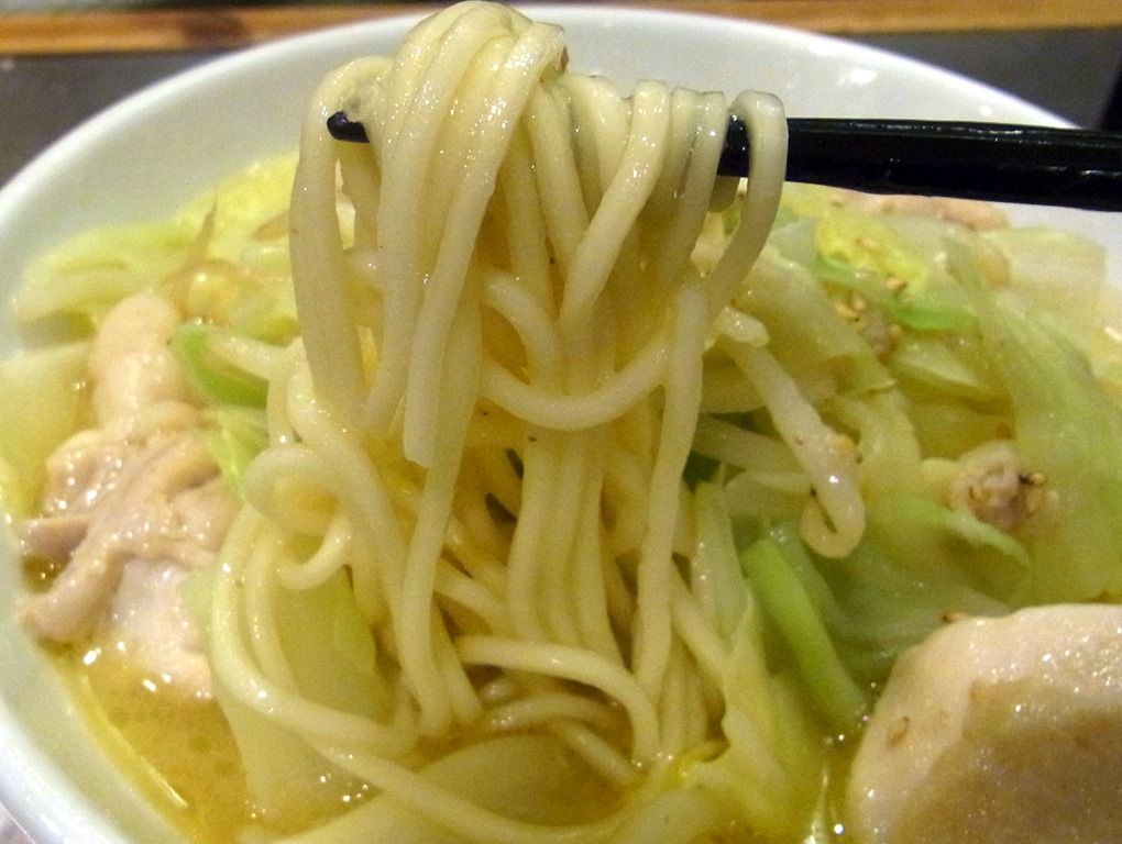 トッピングが異なるだけと言ってしまえばそれまでですが、たっぷりの野菜と鶏肉を麺と一緒に頬張ると、鶏の水炊き鍋の〆に中華麺を入れた感覚。