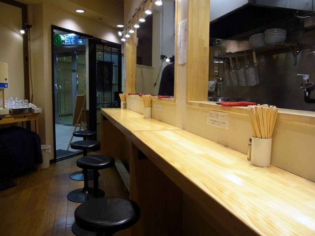 店内は、厨房前に奥に長いまっすぐなカウンター6席。