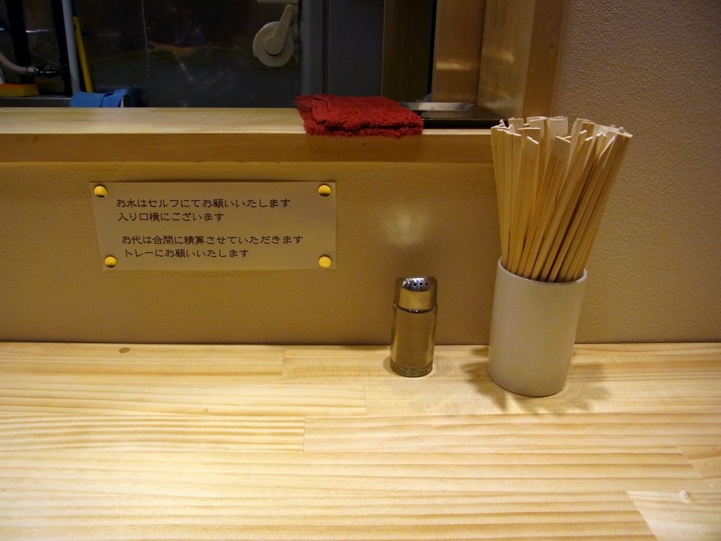 券売機は無く、カウンター高台のトレーに料金を置くと、頃合いで店主が会計してくれる、変則前払い方式。