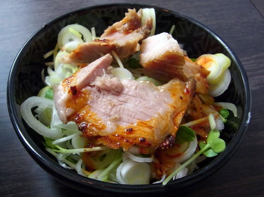 頃合いで、らーめんにトッピング。 辛ネギ塩らーめんに、劇的に味変します。