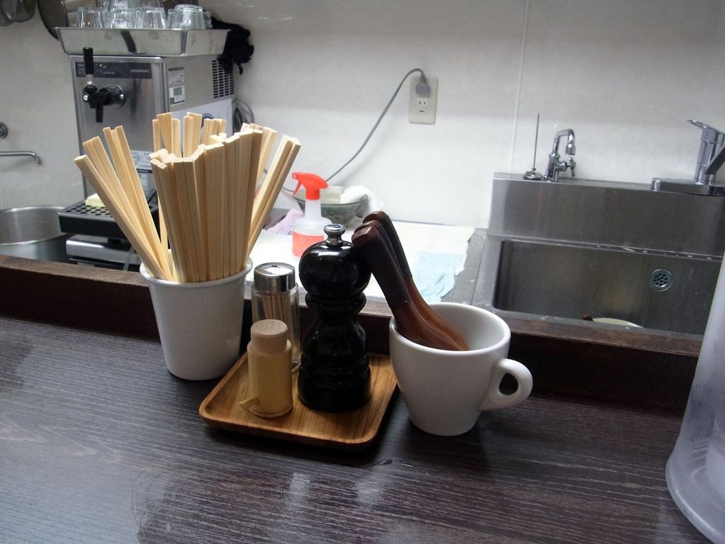 オーダーは、もちろん「塩らーめん」で。この日はオープン記念でトッピングがどれでも1品無料でした。サービストッピは味玉と迷って、「自家製ラー油の辛子葱」に。