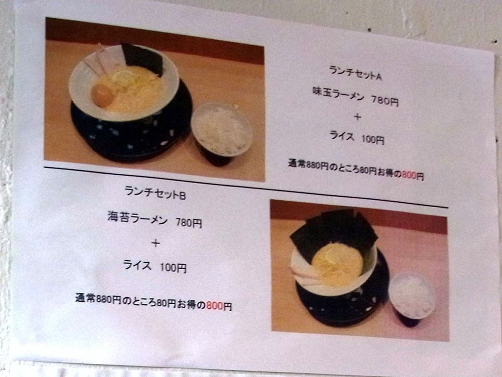 ランチセットA・Bは、麺とライスのセットで80円お得。