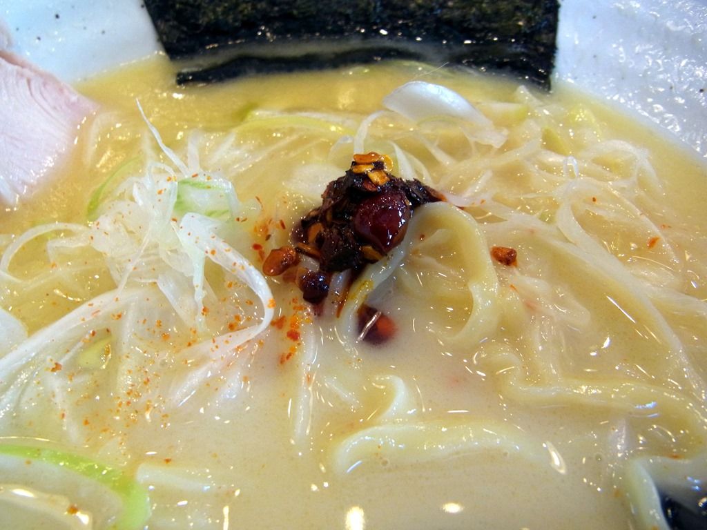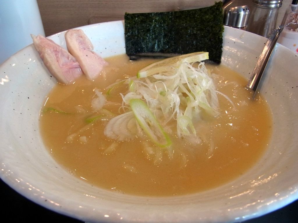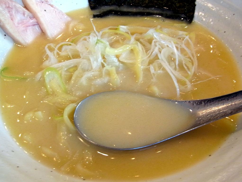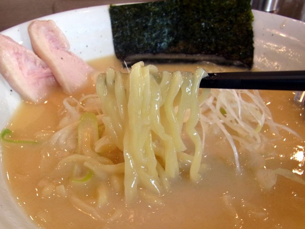 スープは、白濁したクリーミな鶏白湯。