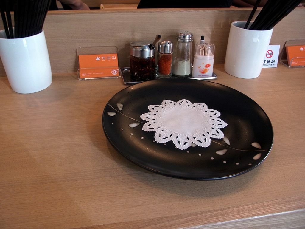 卓上には、あらかじめ紅葉柄の異様にデカイ受皿がセッテイングされていますw
