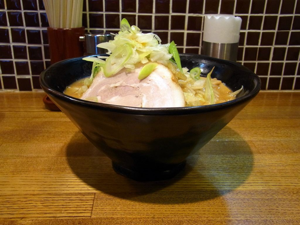 野菜増しにすると、炒め野菜だけでなくネギも増量。ド濃厚スープにたっぷりの野菜がマッチして、いい感じのバランスになります。
