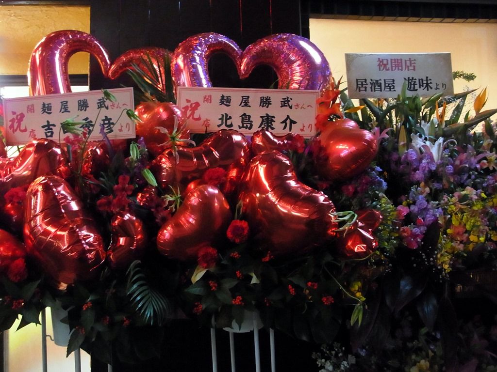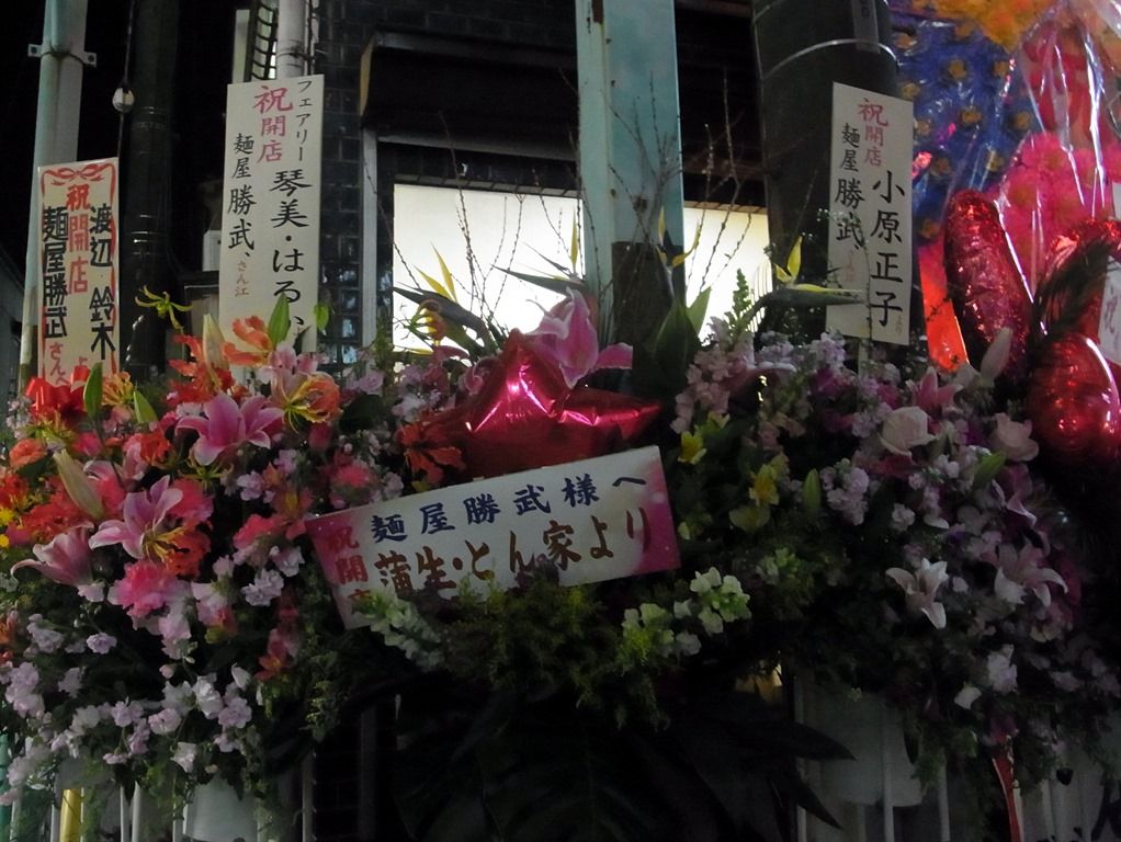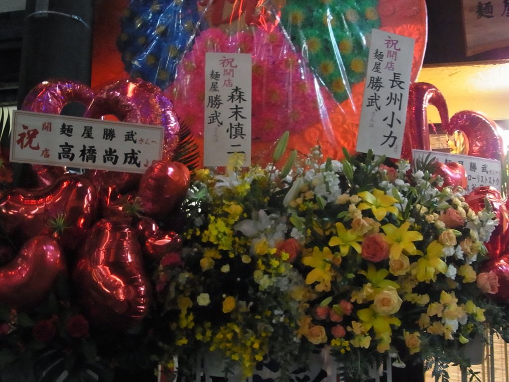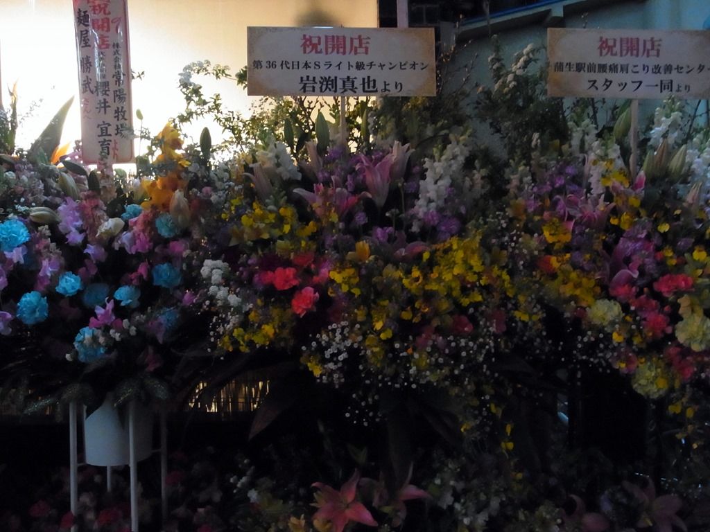 店頭には山のような開店祝花。 スポーツ関係からの花多数。