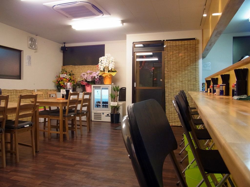 店内は厨房前に真っ直ぐなカウンター7席、4人卓x3。 19:20頃入店で、先客無し後客6。
