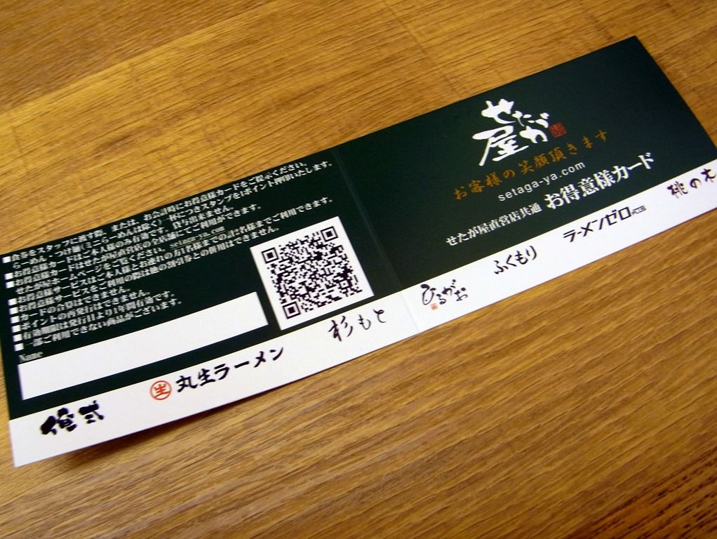 注文を待っていると、せたが屋お得意様カードが配られました。