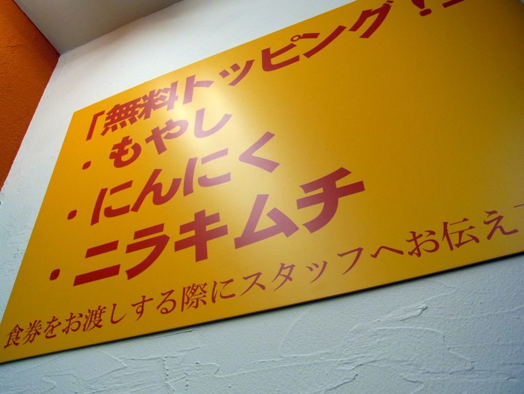無料トッピングは、もやし・ニンニク・ニラキムチの3種類。
