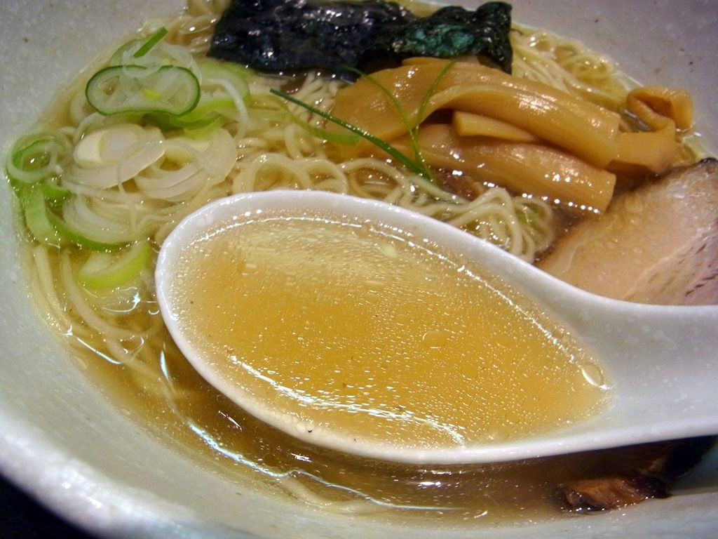 薀蓄によると、スープは大山地鶏をベースに野菜、鰹節・煮干しなどの魚介、昆布、椎茸などをゆっくりと煮込んだもの。
