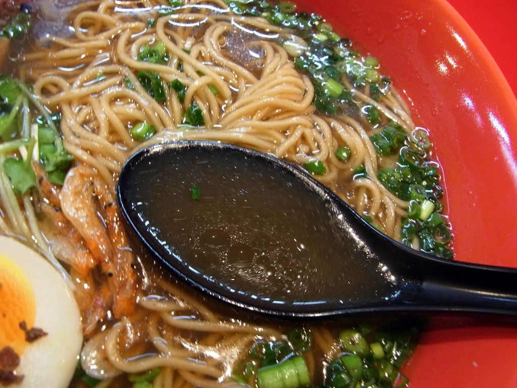 スープは、さらりtした清湯醤油味。 徹頭徹尾海老がガツンと主張するコンプリート・シュリンプスープw