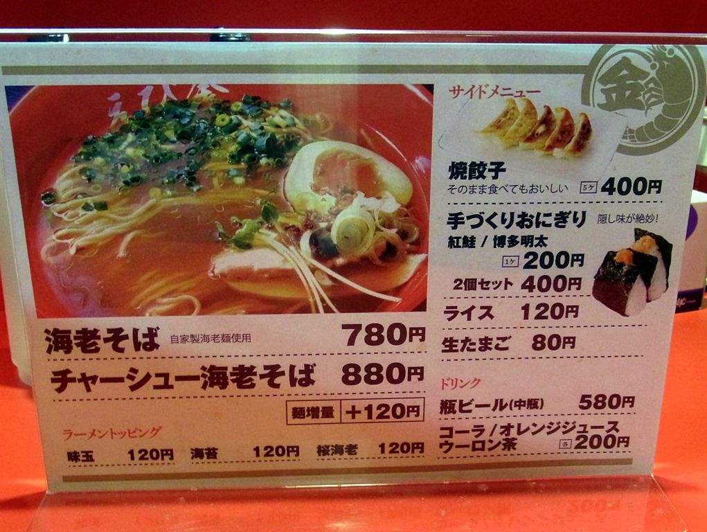 券売機横にあったチラシ。 1杯に使用される海老は、約50尾。