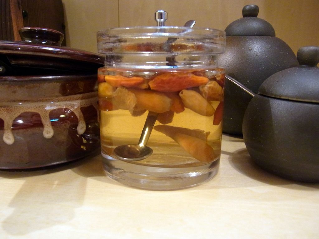 卓上調味料は、コーレーグース、一味唐辛子、紅生姜。