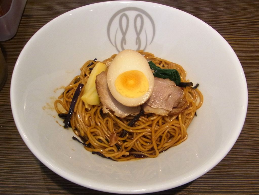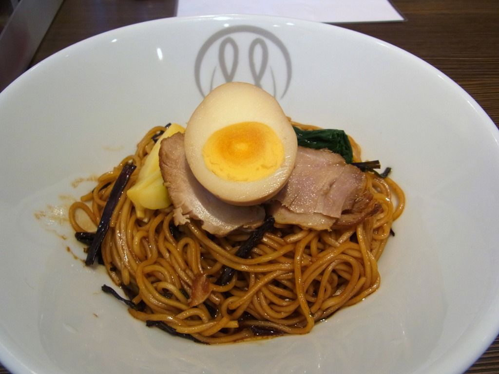 鶏そば・鶏醤油そばが汁麺ツートップですが、1軒目で「濃厚しょうゆ鶏そば」を食べたばかり。 というわけで、オーダーは「元祖 拌麺」にしました。