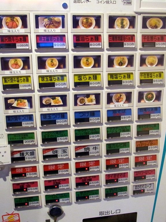 券売機のボタンは、下から3行目左から2列目「限定700円」が、「かけにぼらぁ麺」のボタンです。