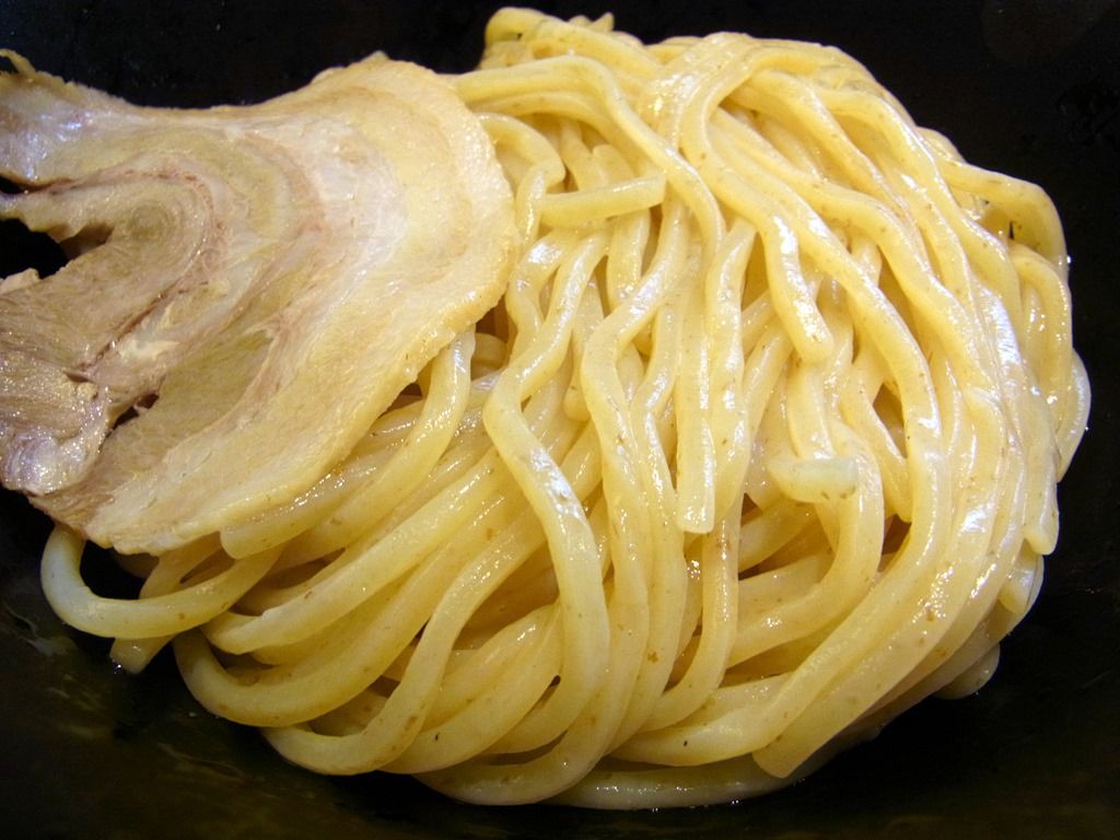つけ汁は、ドロリとした濃厚な豚骨魚介醤油味。