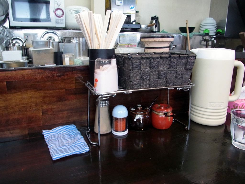 卓上調味料は、胡椒、一味唐辛子、辛子味噌、おろしニンニク。