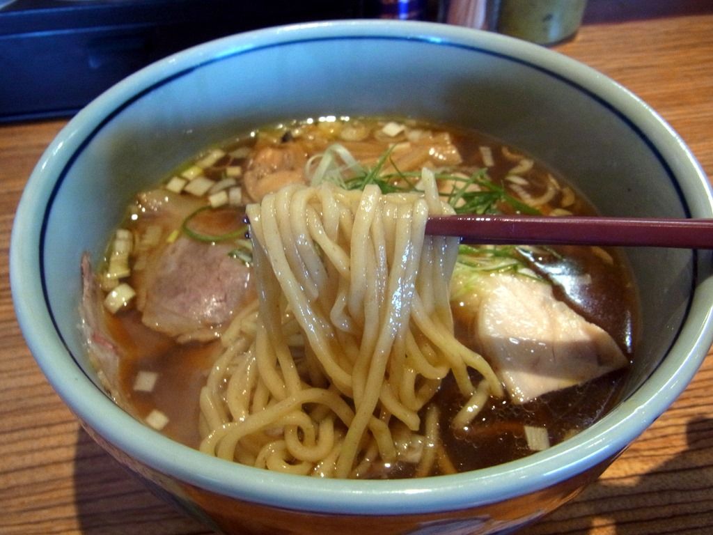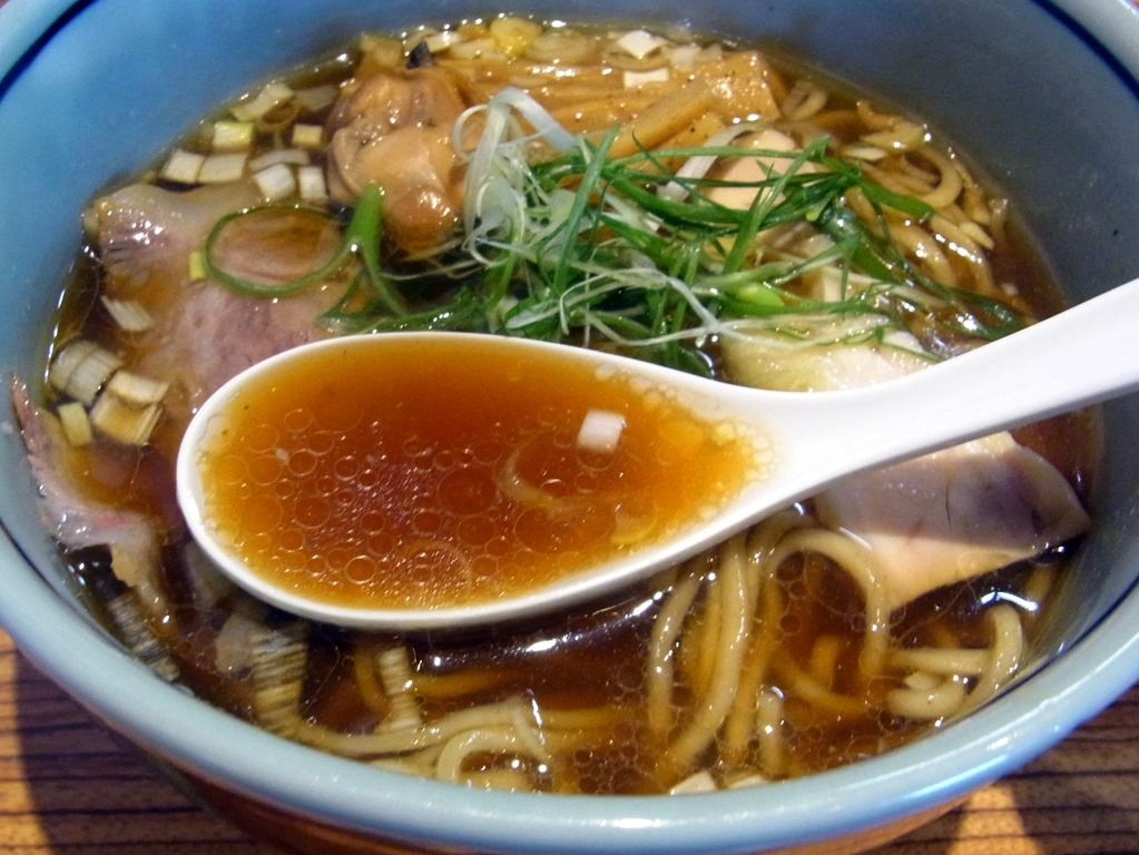 ちょっと甘みが強めで動物性弱め、油感も控えめで極めて蕎麦つゆ的な味わい。
