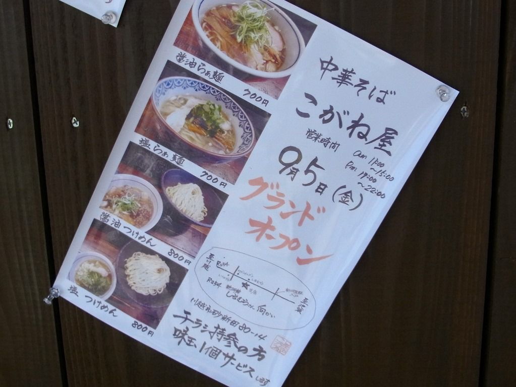 2014年9月28日、新河岸の新店「中華そば こがね屋」へ。