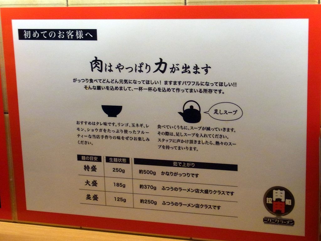 肉肉ラーメンは、並盛・大盛・特盛同料金。