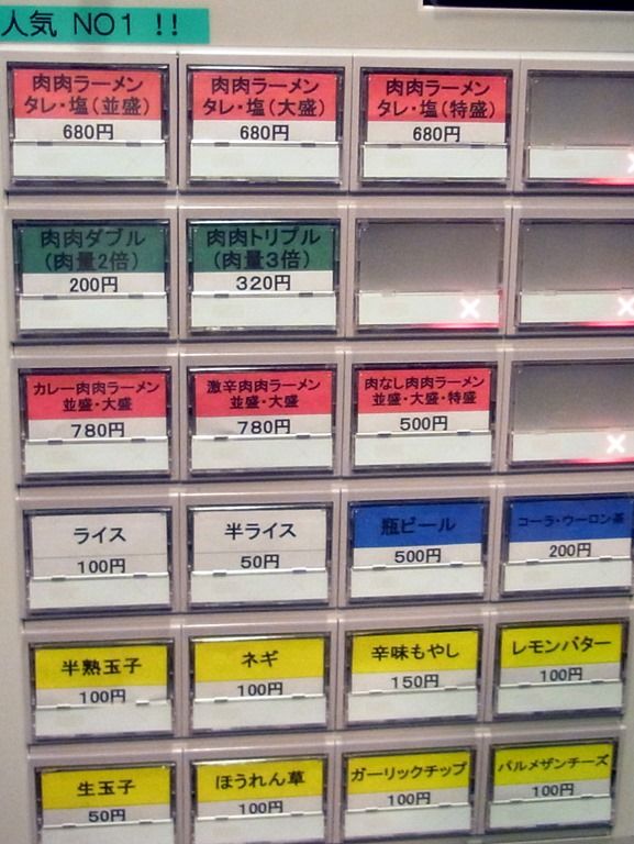 オーダーは、券売機先頭左端の「肉肉ラーメン」にしました。