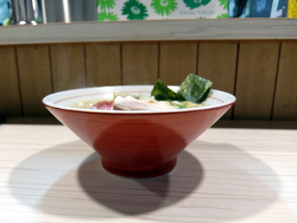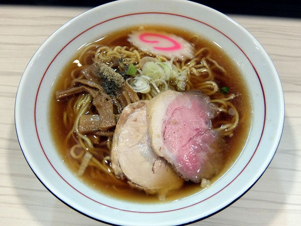 昔ながら的なラーメン丼で登場。 具は、海苔、きざみネギ、チャーシュー2種、魚粉。